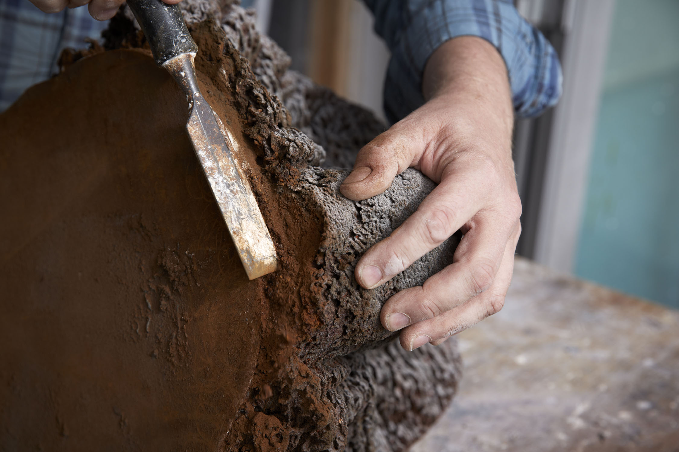 An artist working with clay to capture organic textures and movements in abstract sculptures and vessels.