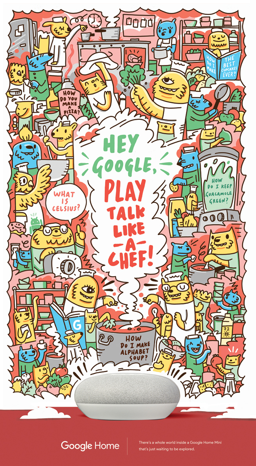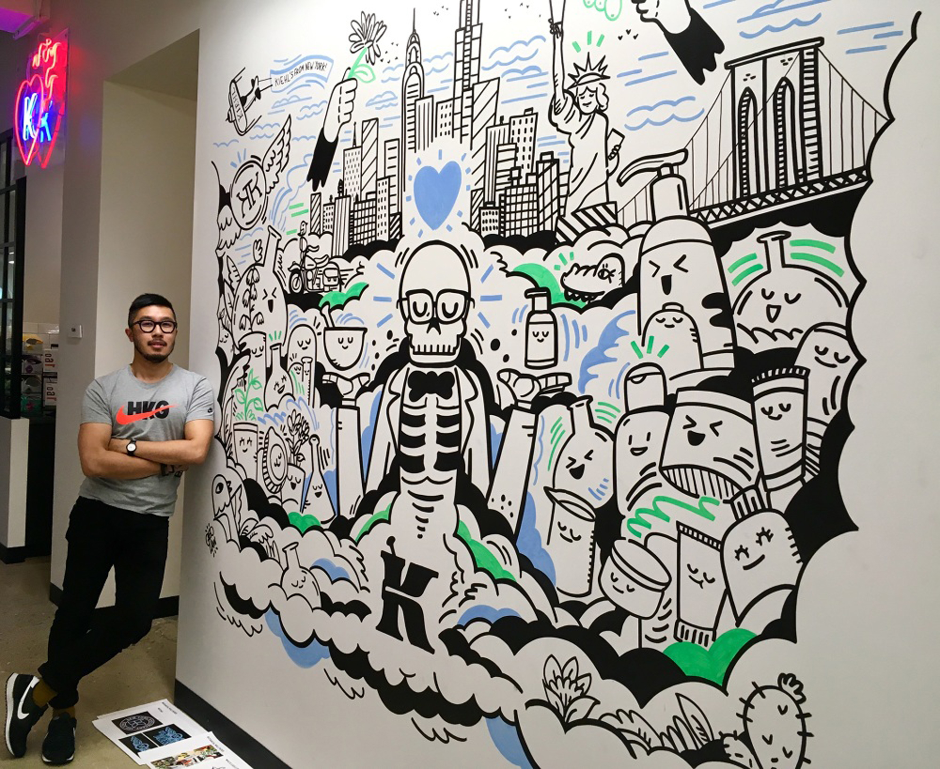 Geo's work has appeared in the New York Times, Stylist Magazine and the Washington Post, and he's created murals at companies such as Facebook, Walt Disney Animation Studios and Tumblr. Seeing his doodles on the wall would brighten up the most dismal of days at the office.