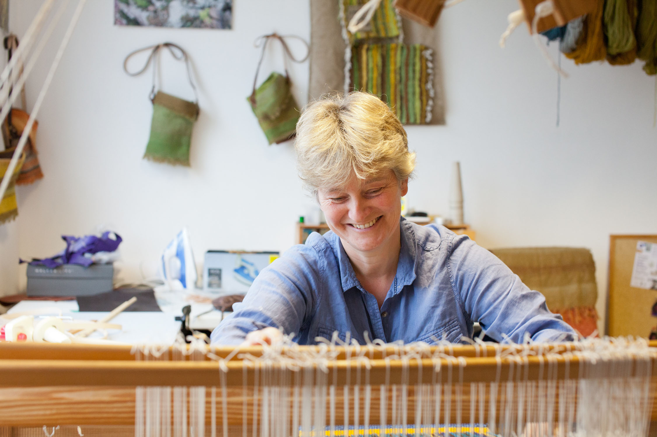 I’m a weaver who specialises in working with wool and linen. I dye most of my own yarn and weave fabric, which I combine with leather to make bags and other accessories.