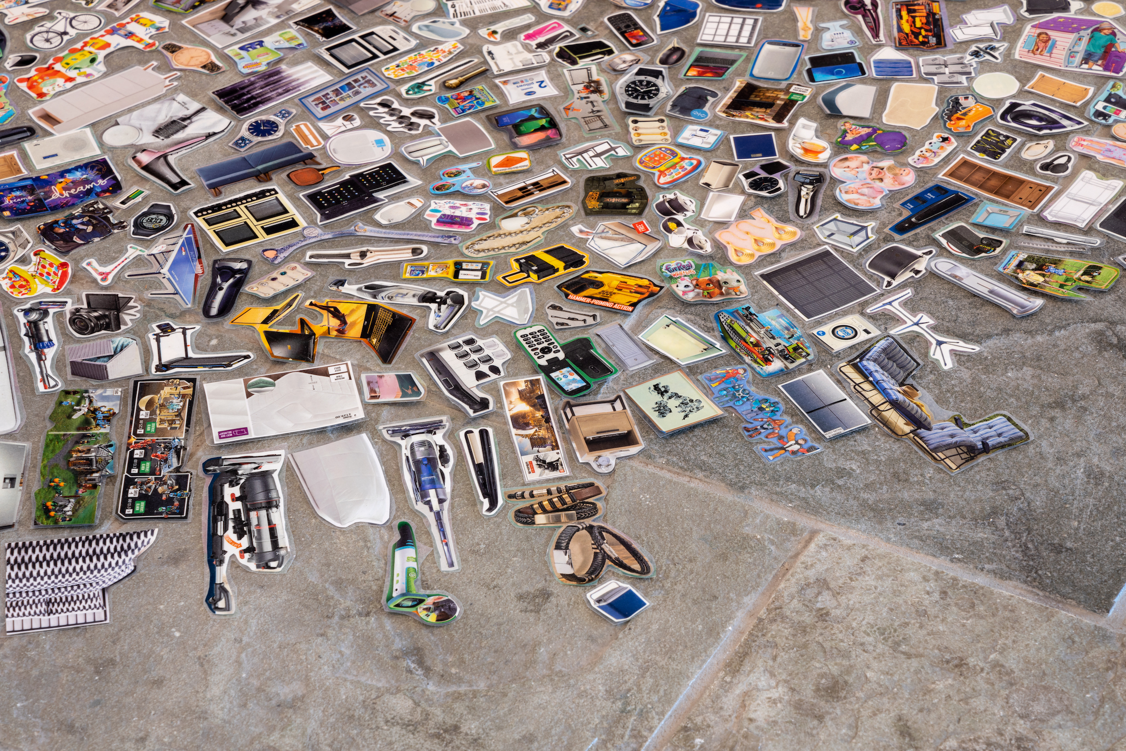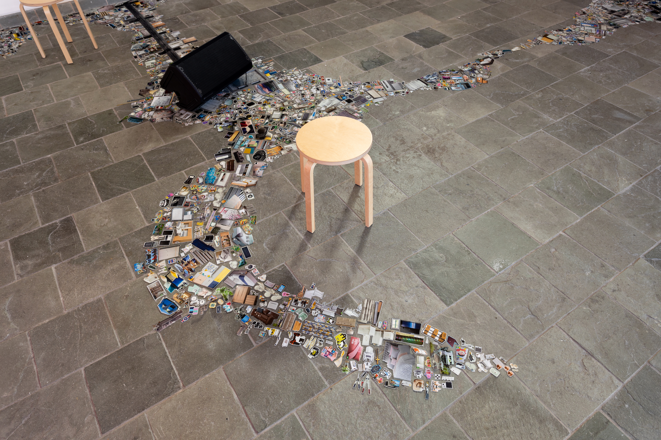 For her Platform exhibition at Persistence Works, Theresa presents Gargantua. This floor collage and sound piece draws on the last ever printed edition of the Argos catalogue, to explore mass production, neurodiversity and waste.