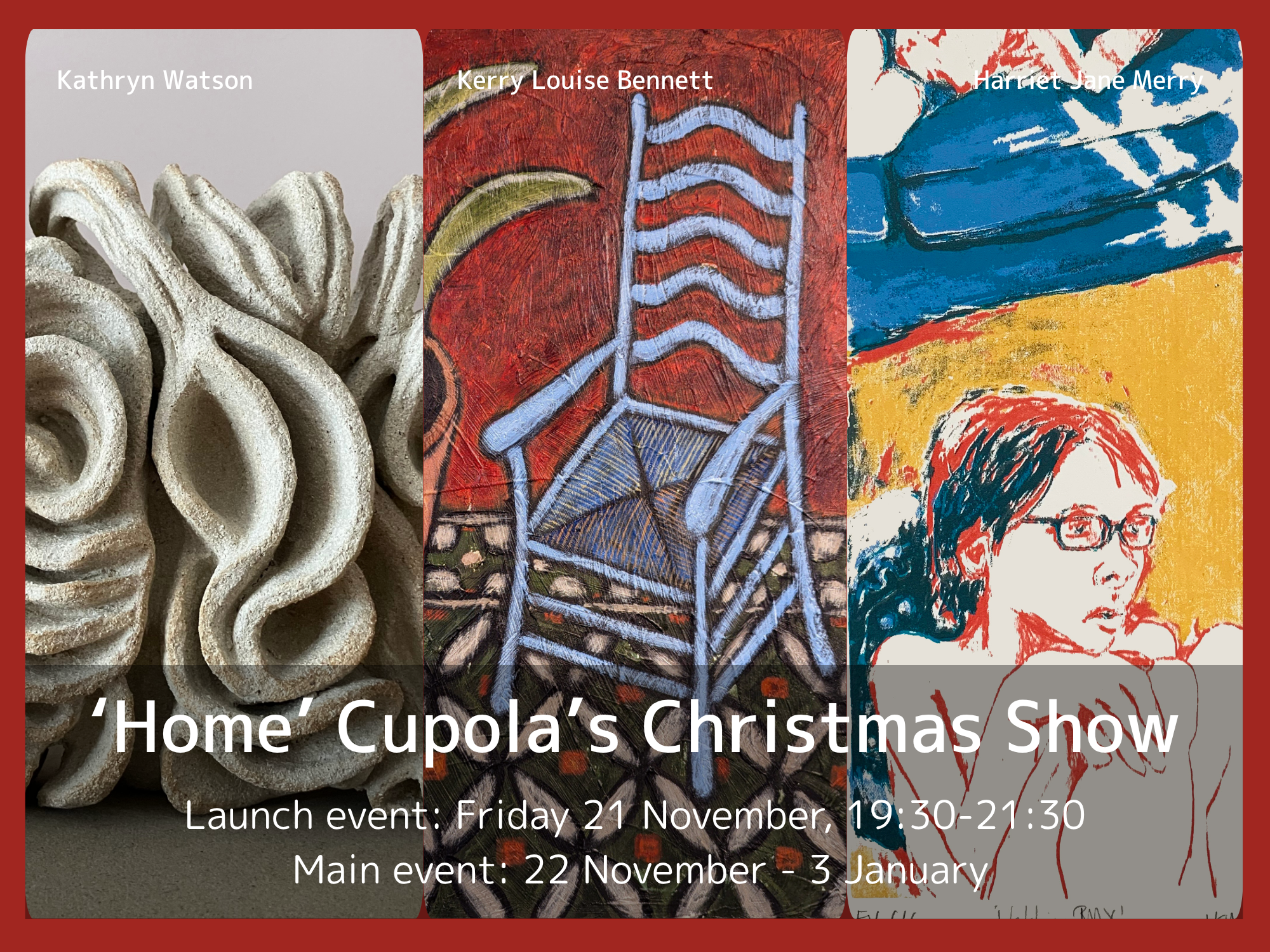 Cupola's Christmas show. Exploring the meanings of home – from domestic space, family belonging and identity to shelter, comfort and place. Opening on 21 November with chance to meet the artists and get festive with wine, nibbles and mince pies.