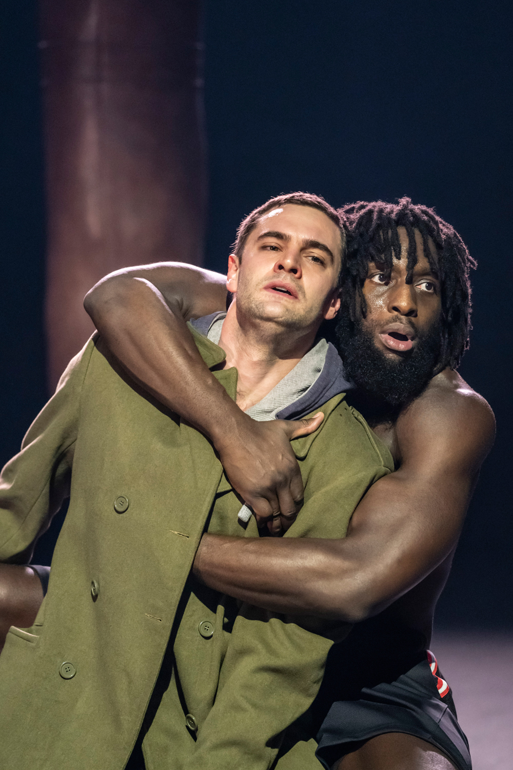 By focusing on the intricacies of politics, rather than the battle scenes, Hastie makes space to explore the interpersonal relationships between the play's core characters. Stella Gonet brings a whirlwind of energy to her performance as Coriolanus's mother, pushing and cajoling him into the political life – while the military rivalry between Coriolanus and Theo Ogundipe's Aufidius has queer undertones as they engage in muscular combat that is part Jason Bourne, part intimate dance.