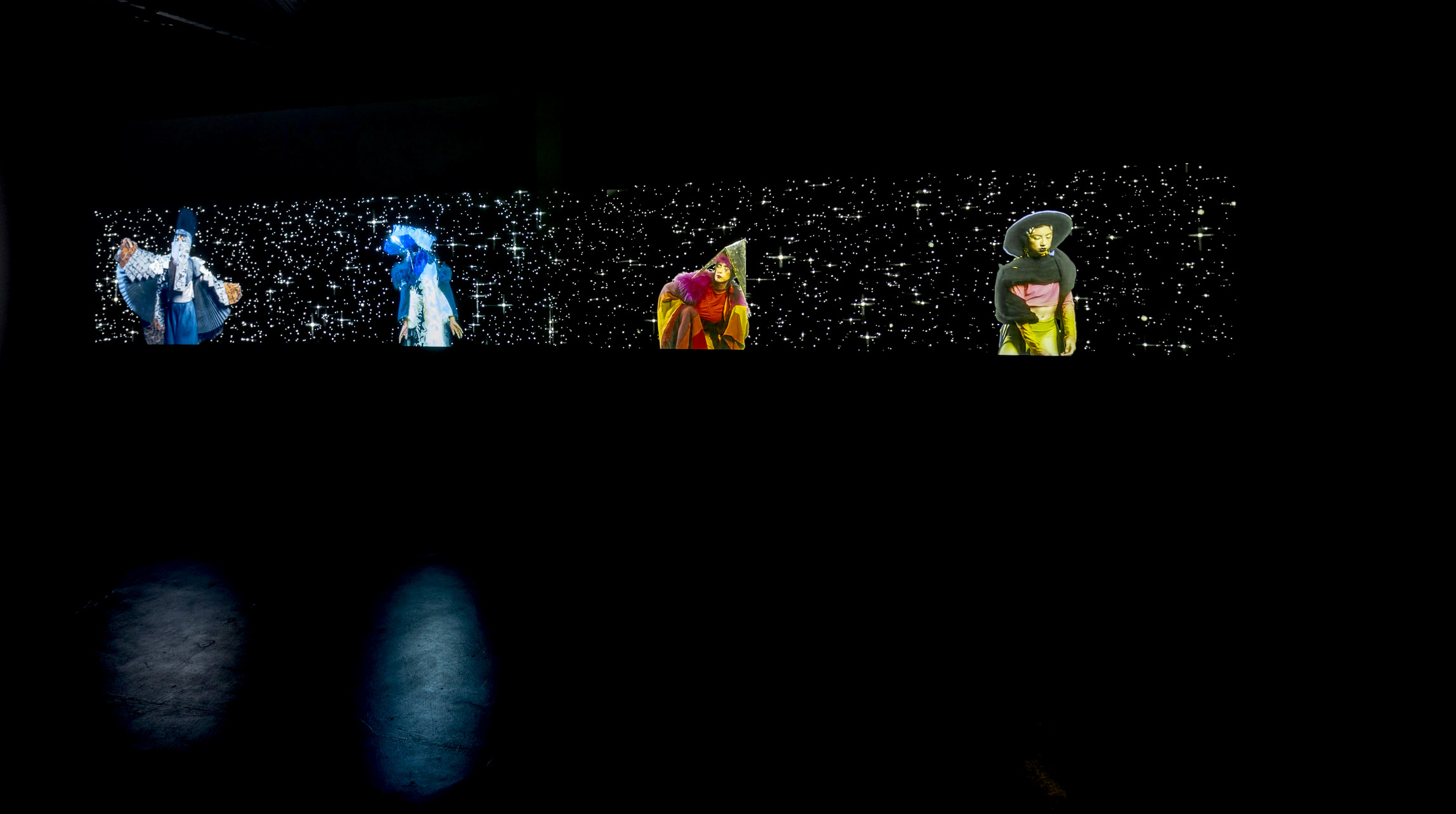 The exhibition encourages questions of what is it to be in between cultures – to have that choice, but also to be unable to cancel out one’s own heritage that can appear to be far away when in reality it's ever present in others' responses and reflections of your presence. Family stories passed down and ones forgotten that may want to be rekindled or retold – to be understood or reinterpreted into a new dance – energetically echo around. It resonates with my own lived experience of being dual/triple heritage – Malaysian Chinese and White English. The characters themselves incorporate different elemental duos: Wok Hei is fire and metal, Hybridity is earth and sky, Lo Ting is earth and water, and the Navigator is air and wind, said to carry a thousand stories in her tortoise-like shell.