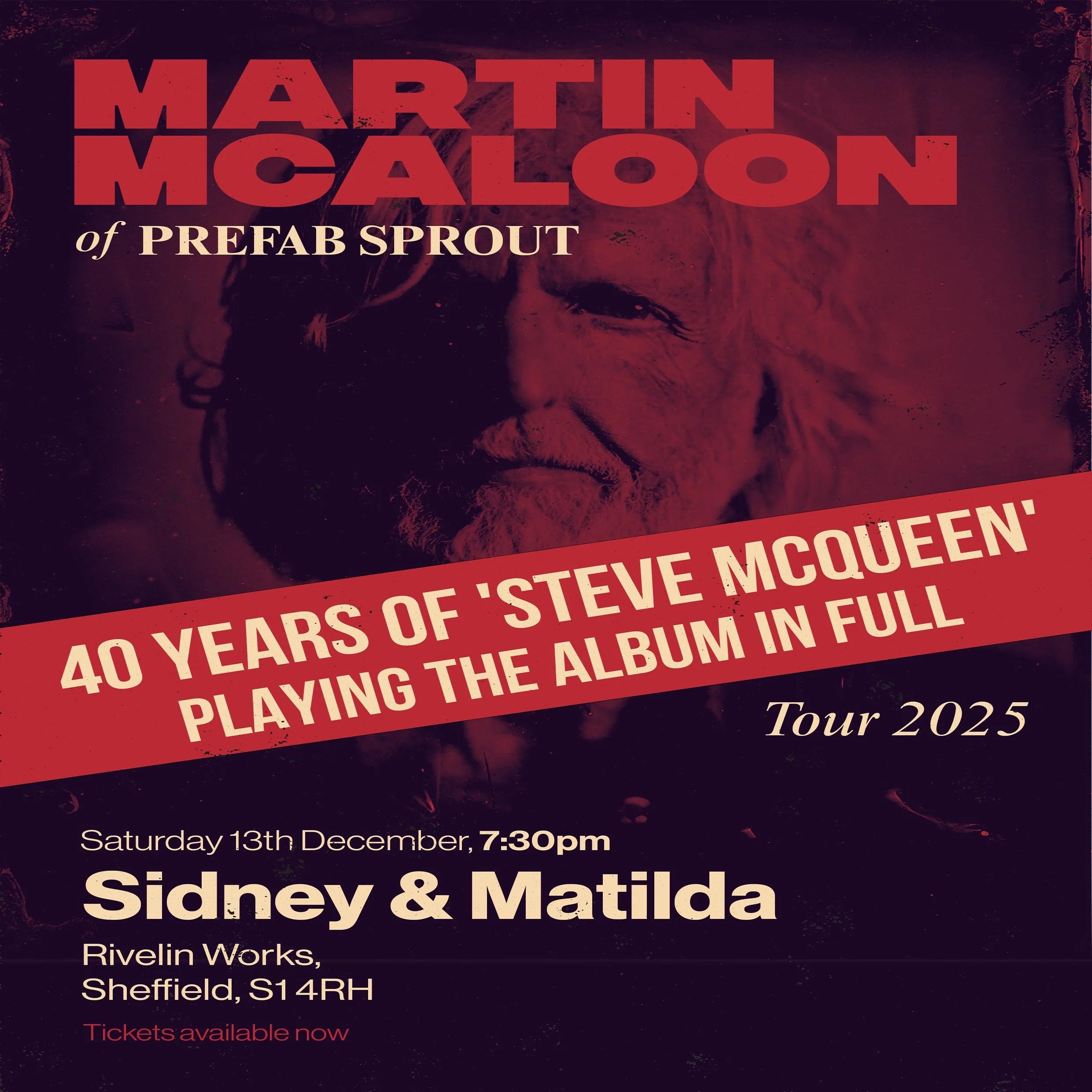 To celebrate the 40th anniversary of Prefab Sprout’s landmark album Steve McQueen, founding member Martin McAloon will be performing the record in its entirety.