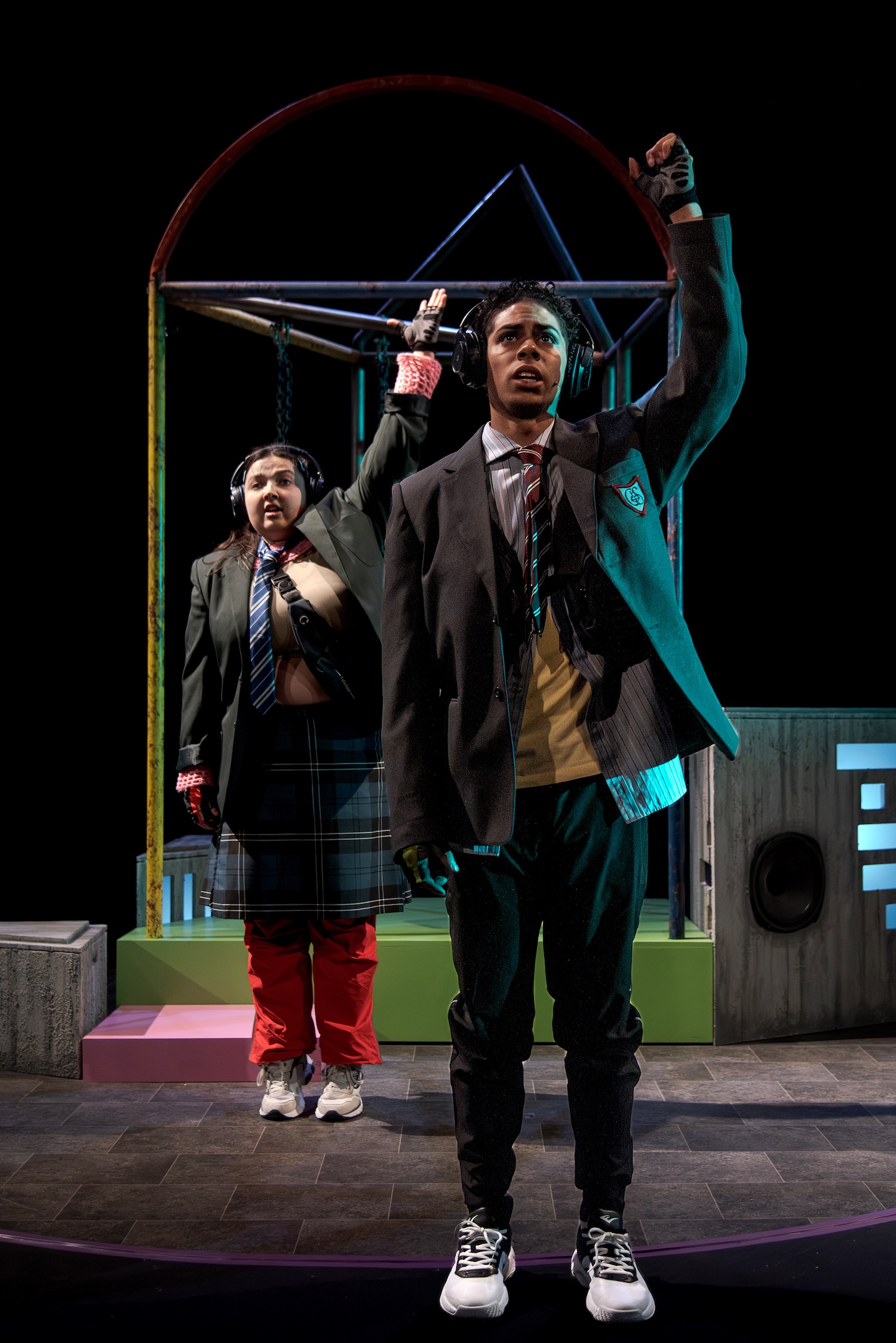 My Brother’s A Genius is the effervescent creation of playwright, Grime-poet, multi-disciplinary artist, neurodivergent academic and pro-raver Debris Stevenson. A collaboration between Sheffield Theatres, Theatre Centre and the National Youth Theatre, the play is a multisensory experience developed through conversations with hundreds of young people across the UK. Its care for neurodivergent youth is evident in the production’s ethos of accessibility.