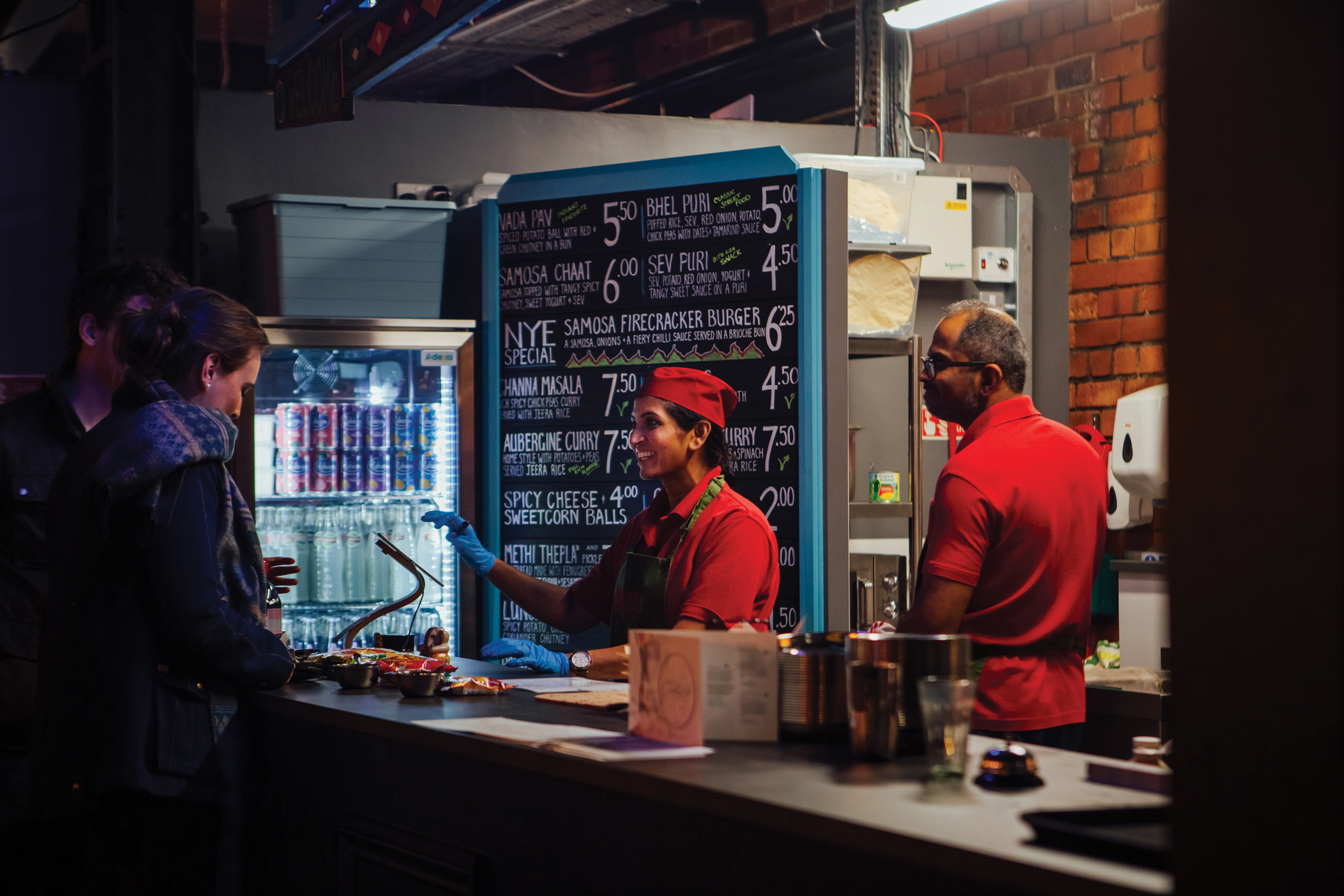 Two former factory floors filled with traders serving up exceptionally tasty and varied options. Take your pick from South Indian street food, Balkan barbecue, sushi, natural wine, and more.