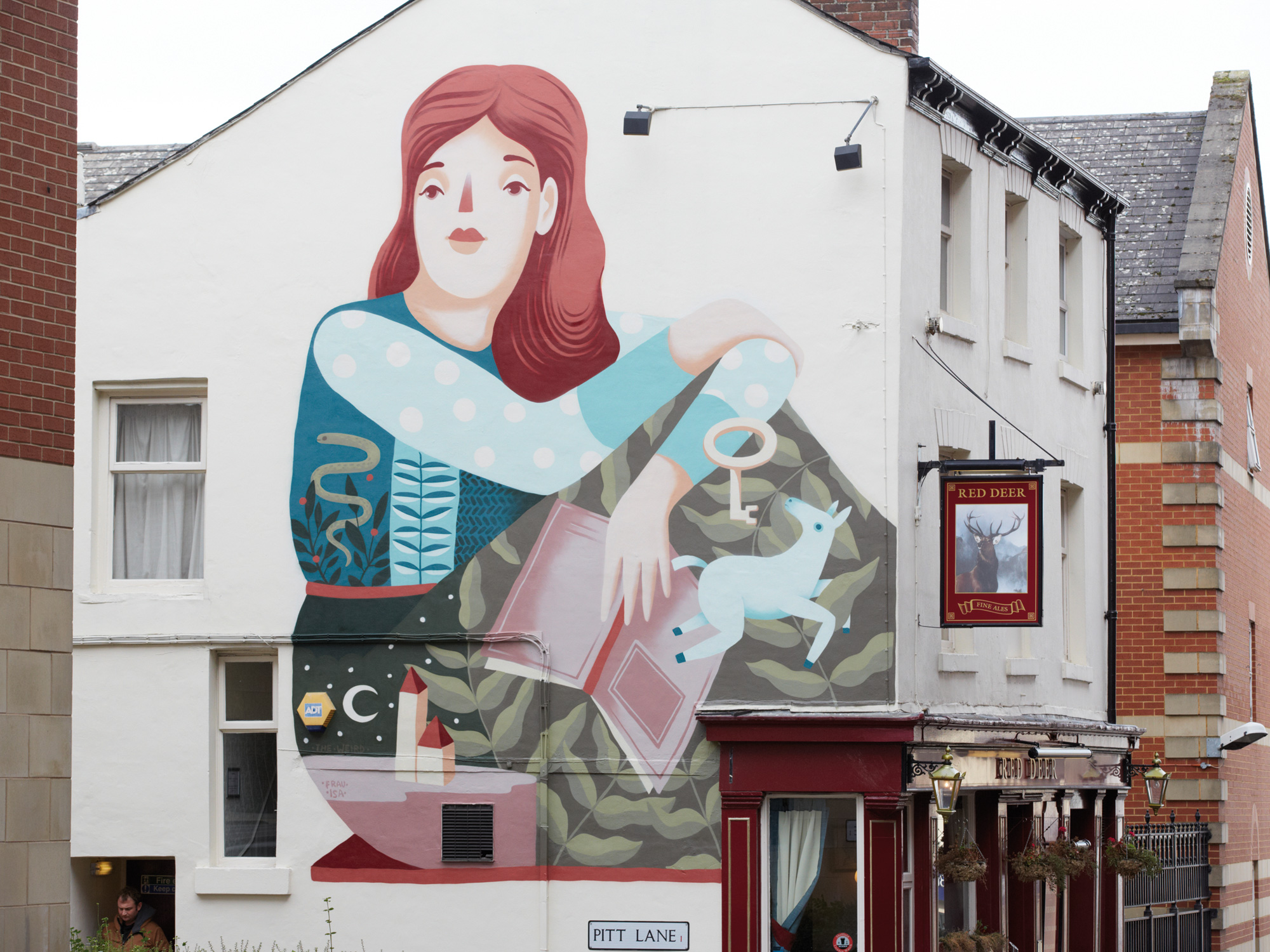 The Spanish artist Nano 4814 left behind this bright, wacky, and slightly unsettling piece when he came to town as part of the Feature Walls street art festival in 2016. It's the ninth stop on our city-centre street art trail.