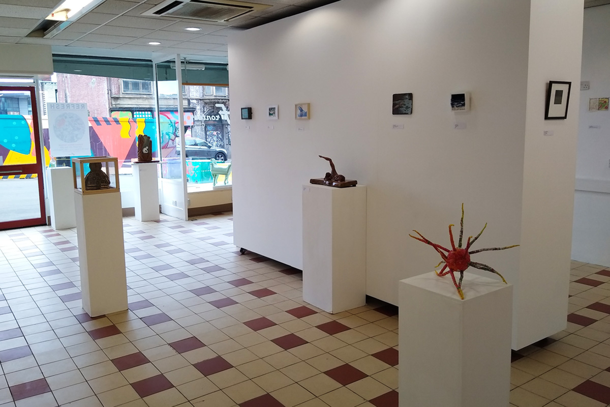 The Fronteer programme is a combination of exhibitions by individuals or groups who have hired the space, and themed open calls in which Sharon and Michael indulge their passion for curating engaging and thought-provoking shows. Submission to the open calls is free, participants only paying if their work is selected for exhibition – a fair model, acknowledging the financial difficulties many artists face. They have also recently opened a smaller space beneath the gallery, ideal for workshops or meetings. Exhibitions usually last for around two weeks, so regular visitors are guaranteed to always seeing something new, and the quality of the shows has undoubtedly risen as their reputation increases.