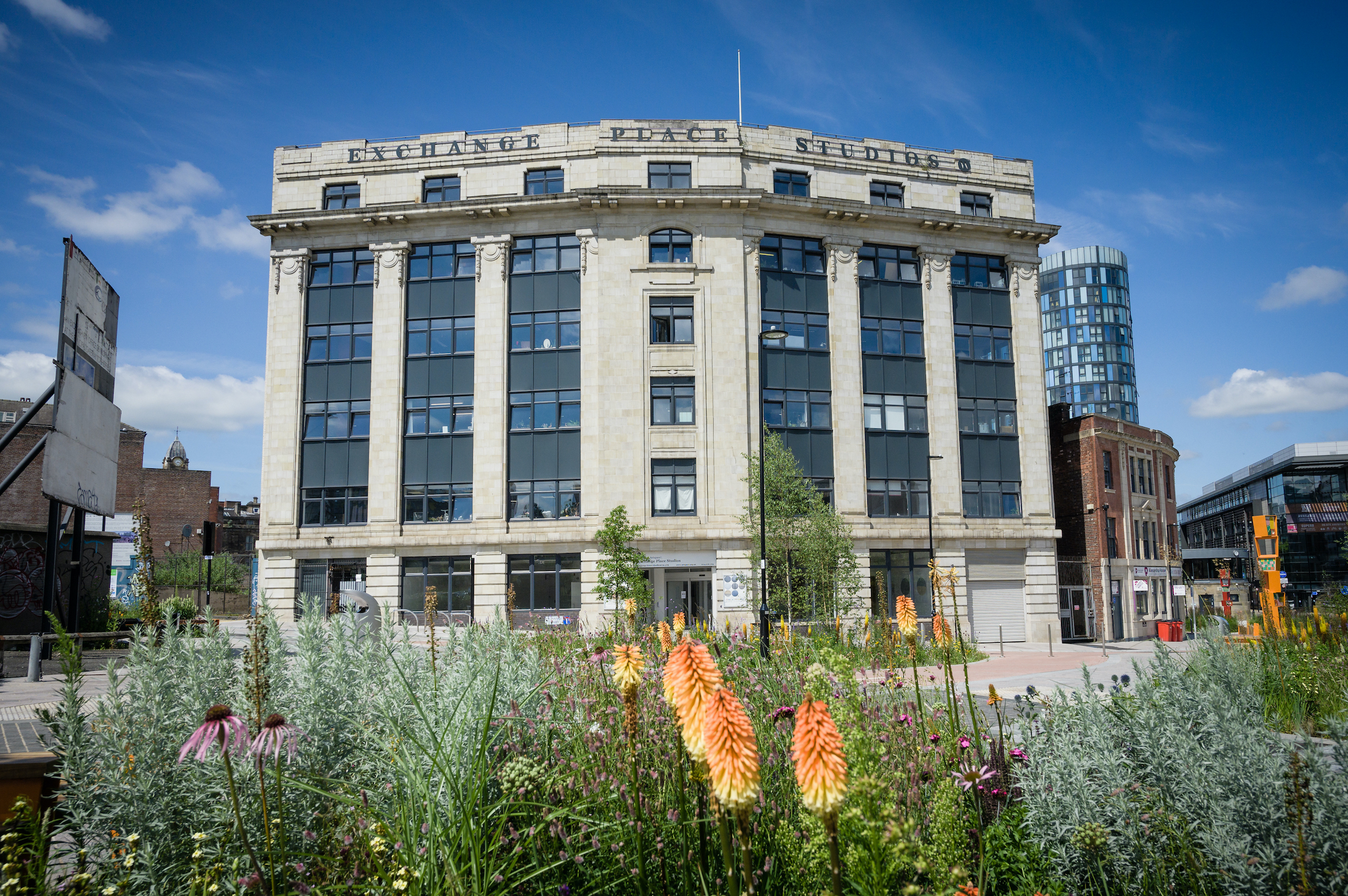 Based in Sheffield’s historic Castlegate quarter, the building was originally a wholesale branch of WH Smith in the 1920s. It’s lived many lives since then – and in 2013, Yorkshire Artspace moved in, converting it into studios. It now sits in a colourful corner of the city centre, among the planting and sculptures of the Grey to Green project.